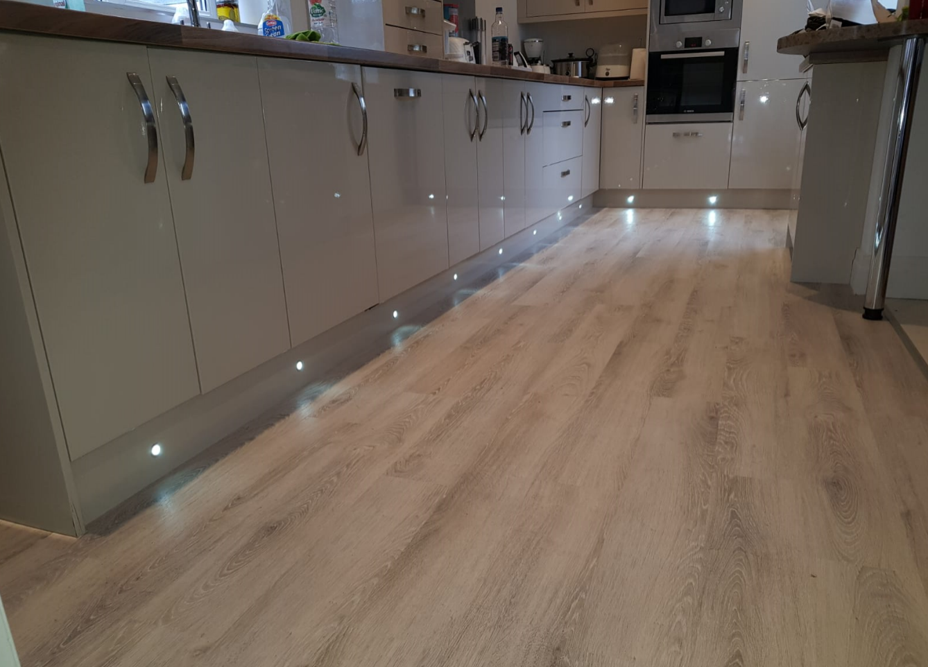 Hall and kitchen flooring installation using Natural Solutions Sirona Click Evergreen Oak LVT Flooring.